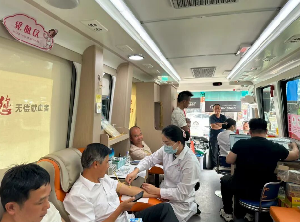 在献血现场,志愿者们协助卫生院搭建服务点,引导献血者有序进行相关流程,贴心准备了饮用水,耐心解答献血者疑问,确保每一位参与者都能获得舒适的献血体验。