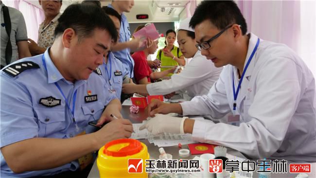 活动启动仪式后,无偿献血志愿者们有序来到三辆采血车前,登记信息、体检、血样采集、等待抽血献血……玉州区委常委宣部长副区长李永耀和玉州区副区长玉林市公安局玉州分局局长李永志带头献血。