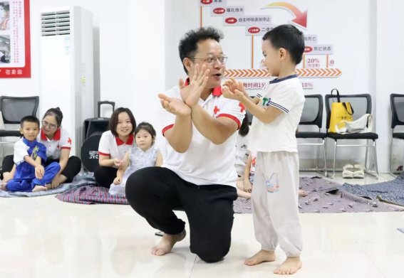 自治区红十字会救助救护部三级调研员黄勋出席仪式并为救援队旗,广西红十字会救护训练中心主任周兆元主持授旗仪式。授旗仪式结束后,应急分队队员分别开展了学生心理危机干预、亲子绘本心理剧两场心理健康主题活动。