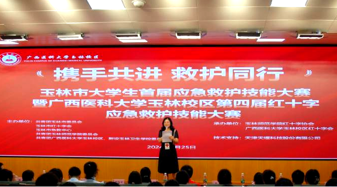 为弘扬“人道、博爱、奉献”的红十字精神,庆祝中国红十字会成立120周年和广西医科大学成立90周年,推进红十字生命教育,引导广大青年学生尊重生命、珍爱生命、保护生命,提高大学生应急救护知识和技能水平,2024年5月,共青团玉林市委员会,共青团玉林师范学院委员会,林市红十字会,玉林市急救中心,共青团广西医科大学玉林校区、附设玉林卫生学校委员会联合举办玉林市大学生首届应急救护技能大赛暨广西医科大学玉林校区第四届红十字应急救护技能大赛。