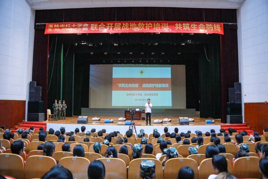 增强学生安全防护意识,提高学生应急救护知识技能普及率2025年9月下旬玉林市红十字会联合玉林师范学院面向2025级全体新生开展为期三天共5场的应急救护知识普及培训,累计覆盖7100余人。
